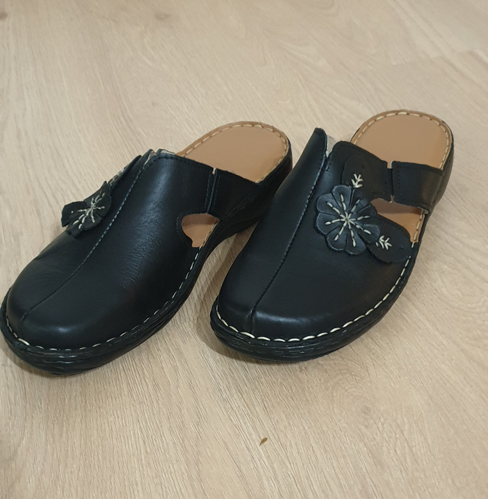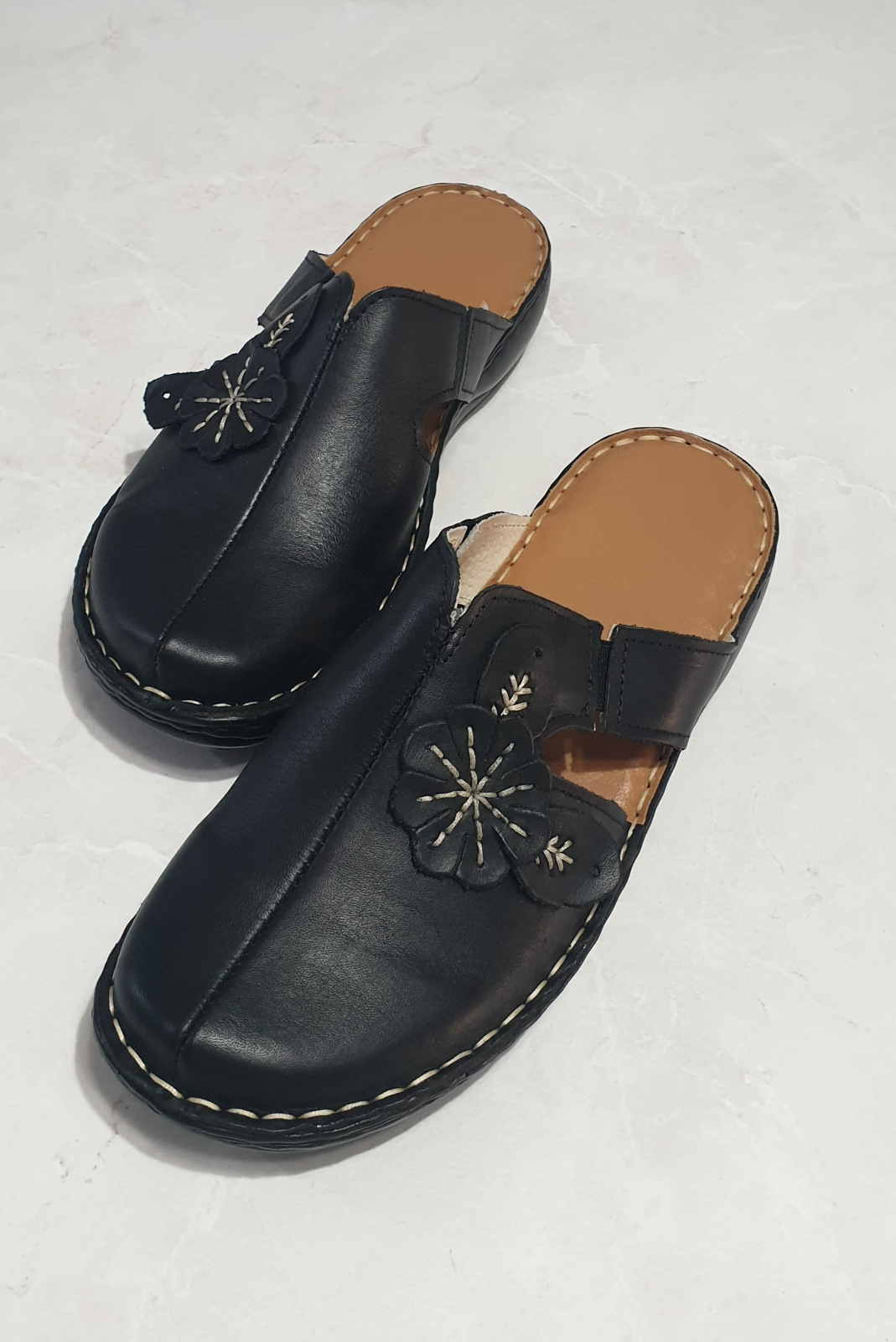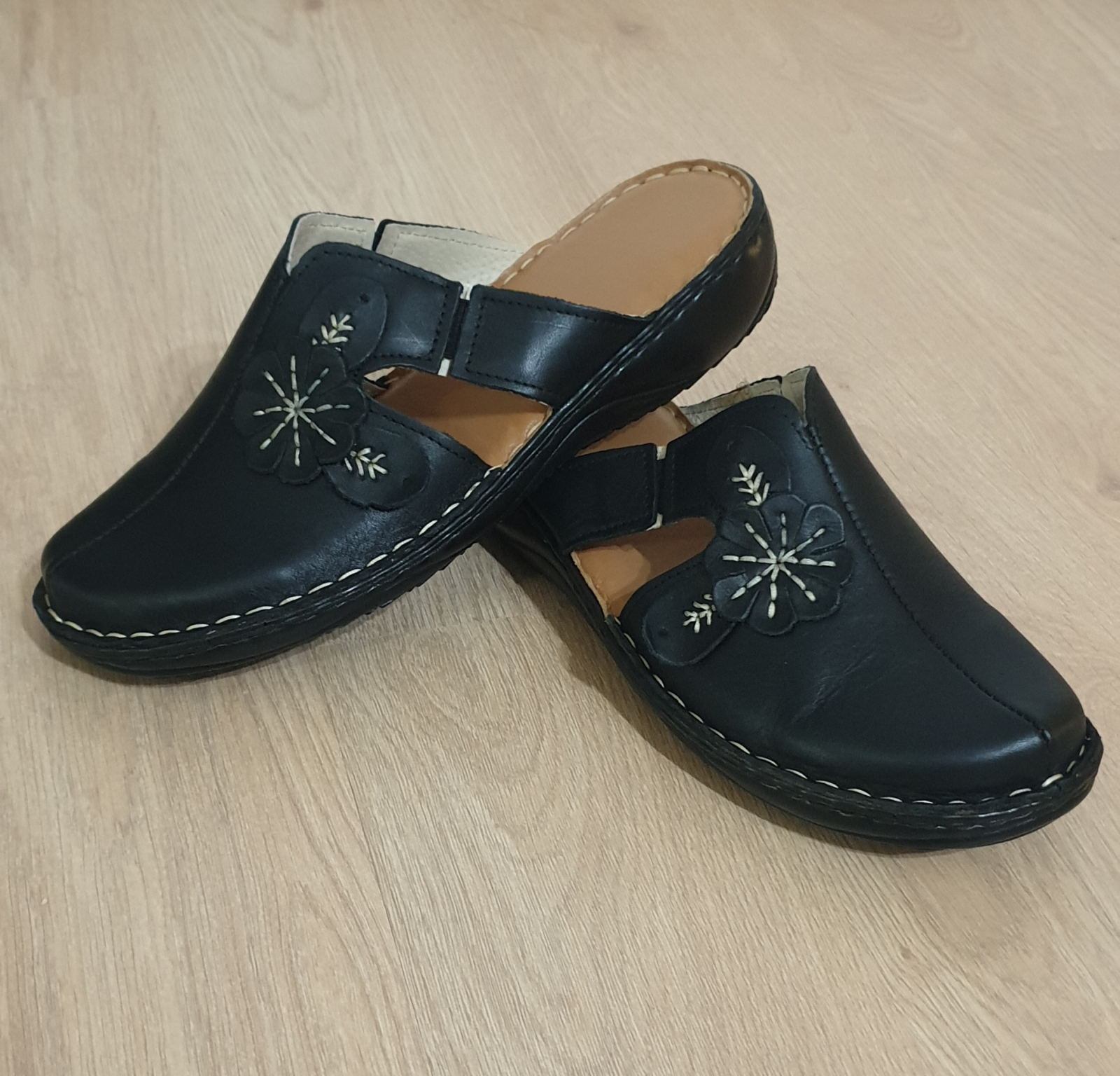 Saboti dama din piele naturala,cusuti manual,recomandati persoanelor care stau in picioare o perioada mai lunga de timp.