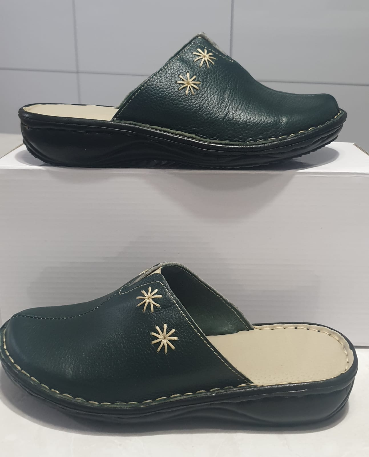 Saboti dama,cusuti manual din piele naturala usori si comozi.