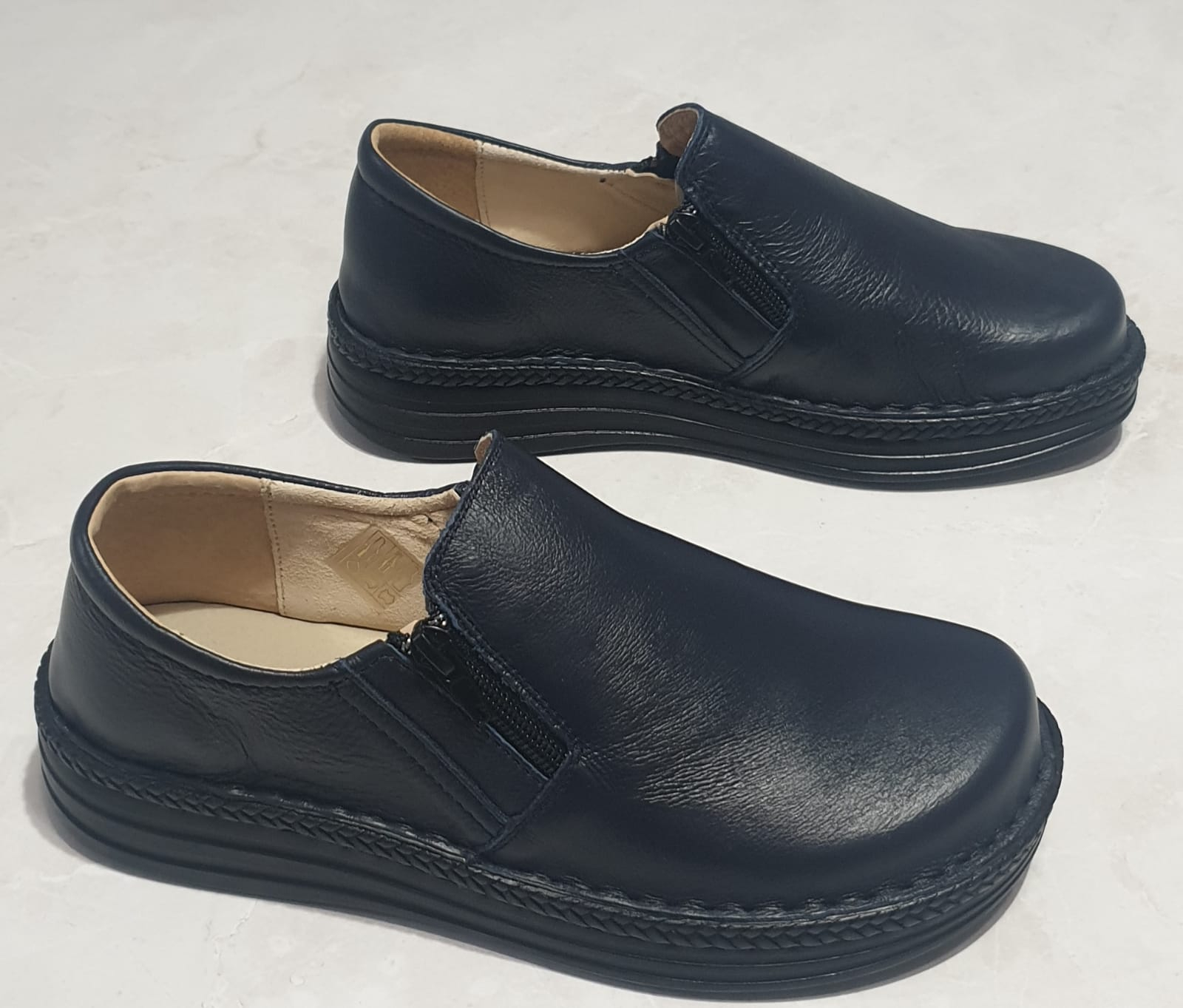 Pantofi dama din piele naturala cu talpa ortopedica,cusute manual care v-a prelua forma piciorului, avand un talonet cu burete.